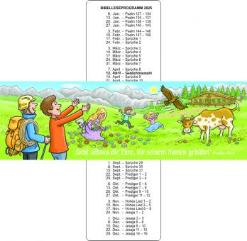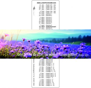 Praktische Lesezeichen im Set a 10 Stk. Mit Jahrestext und Bild auf der Vorderseite und Bibelleseprogramm auf der Rückseite.